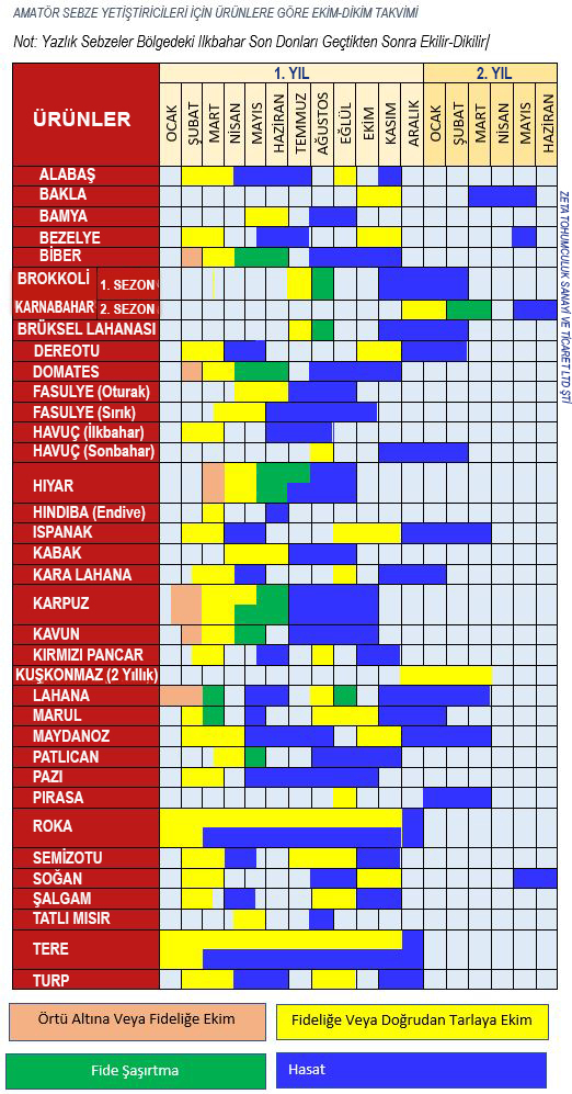 AMATÖR YETİŞTİRİCİLER İÇİN SEBZE TÜRLERİ EKİM DİKİM TAKVİMİ